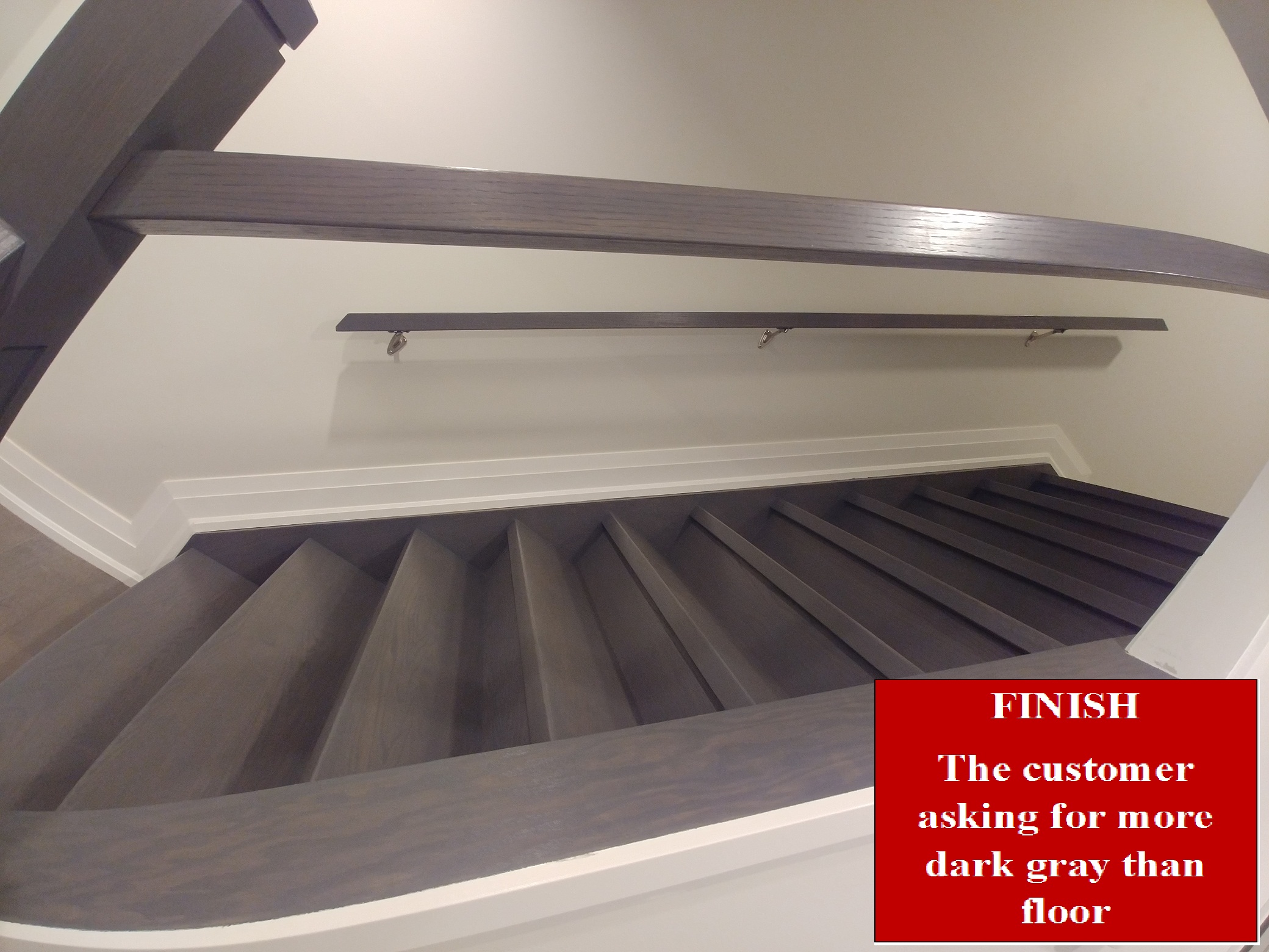When we do the finishing job, means the stair is a new build and we do the colour part, usually matching with the floor is the best for the house. But,